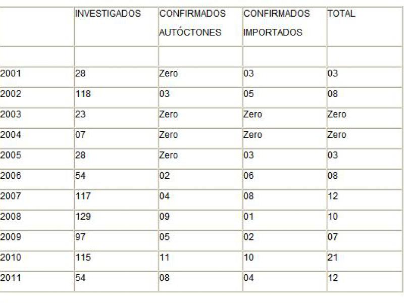 (Ver Foto)DENGUE - CASOS INVESTIGADOS/CONFIRMADOS 2001 - 2011
