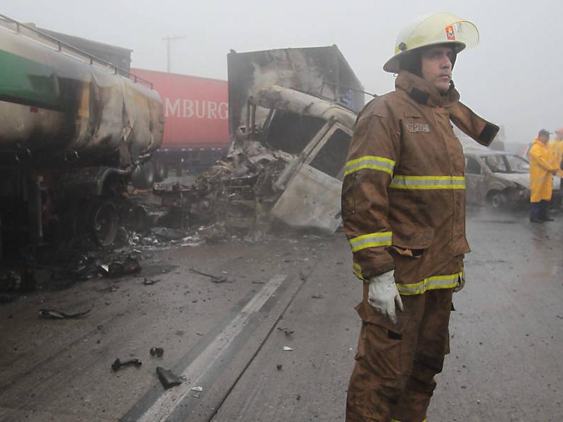 O número de veículos envolvidos ainda é incerto. Os bombeiros e a polícia falam entre 60 e 80. No entanto, segundo o major Milton Miquelazo, da Polícia Militar Rodoviária Estadual, cerca de 300 veículos se envolveram no acidente, que teve extensão de 2 km.