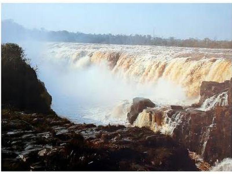 "Sete Quedas foi a maior cachoeira do mundo em volume de água, isso mesmo, foi! Isso porque em 13 de outubro de 1982 as comportas da recém criada Usina Hidrelétrica de Itaipu foram fechadas para a criação da represa de Itaipu inundando as quedas d’água.