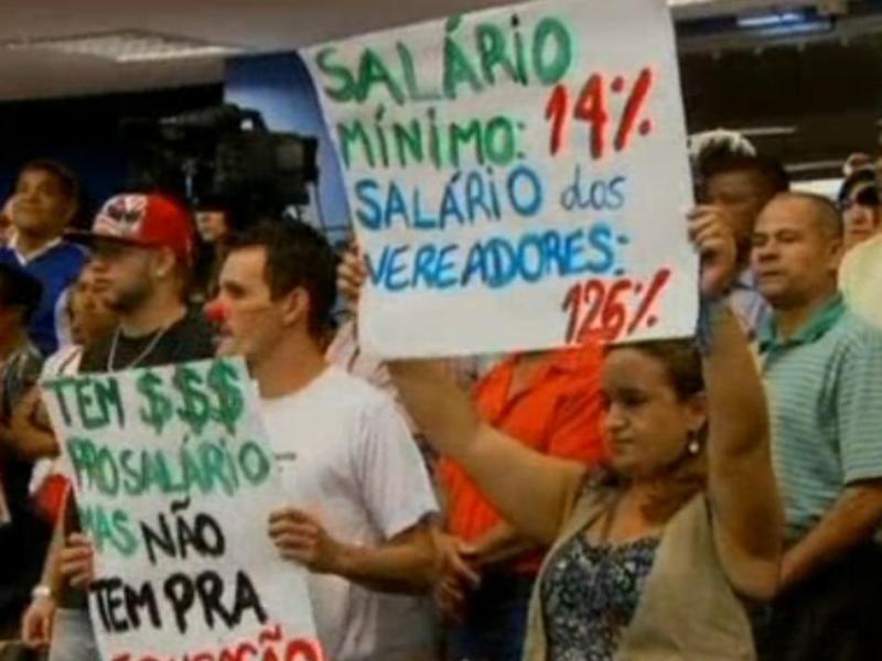O plenário ficou lotado, com cerca de 200 pessoas para a sessão, a penúltima do ano. Com cartazes, os manifestantes lembraram o reajuste do salário mínimo para o próximo ano, de 14,26%, além de outras frases de protesto contra aumento recebido pelos parlamentares. Ao fim da sessão, alguns manifestantes jogaram ovos nos parlamentares. A Guarda Municipal reagiu e usou a pistola que dá choque e gás de pimenta para reprimir os protestos.