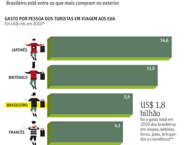 Em 2011, os brasileiros gastaram perto de US$ 22 bilhões em viagens ao exterior, 33% mais do que em 2010, segundo a OMT (Organização Mundial do Turismo). O crescimento dos gastos dos brasileiros só perde para o dos chineses, que saltaram 38% e atingiram US$ 55 bilhões.