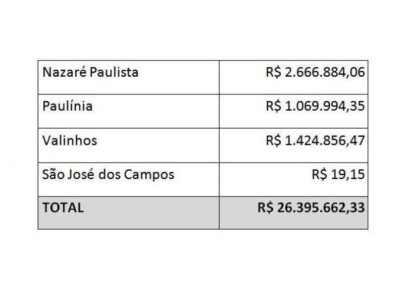 Itatiba foi o município que recebeu o terceiro maior repasse entre as cidades do Corredor Dom Pedro. Campinas ficou com o maior montante (R$ 3.477.456,78), enquanto Atibaia contou com R$ 3.265.798,74.