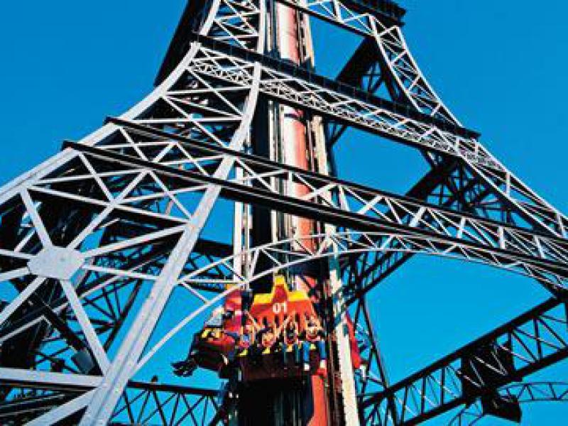 De acordo com informações do parque, o brinquedo tem a altura de um prédio de 23 andares e a queda pode atingir 94 km/h.