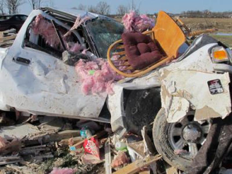 Em Salem, localidade a oeste de Chelsea, em Indiana, uma menina de 2 anos foi encontrada viva em um campo, depois de ter sido levada pelo tornado, afirmaram autoridades. Ela foi levada de helicóptero para um hospital, em estado grave. (Fonte: Folha.com/ Colaboração Dr. Chuck Bunch)