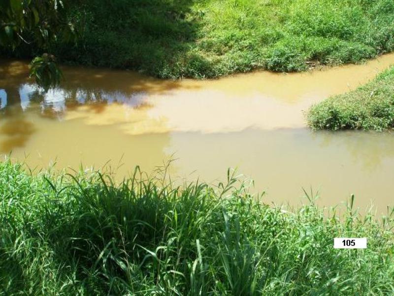 (105 ) e (106) e Fotos nºs. 1 e 2 = Encontro das águas com lodo, vindas do Córrego do Operário com as águas do Ribeirão Jacaré