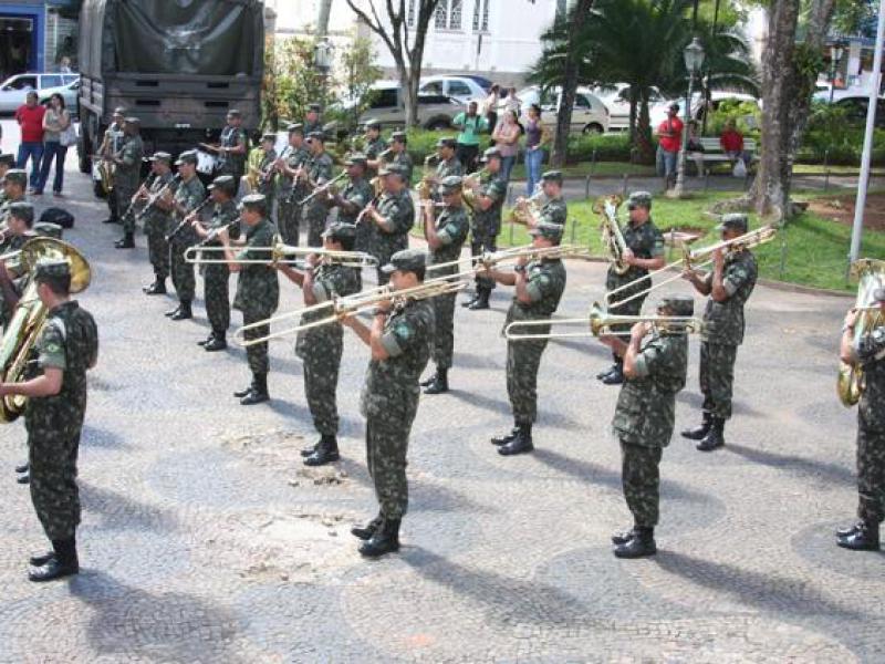 Na manhã desta quarta-feira, dia 9 de maio, a Praça da Bandeira foi palco da apresentação da banda do 5º Batalhão de Infantaria Leve do Exército