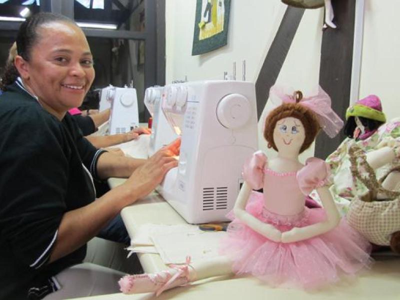 Ana Célia Bispo Santos, 32, também decidiu se inscrever em um curso na área de costura. Ela está fazendo aulas de Confecção de Bonecas. “Já tenho dois filhos e precisava de um curso que me permitisse trabalhar em casa e que fosse uma terapia, já que passo por uma gravidez de risco... vou aprender neste curso para fazer as bonecas em casa e ajudar a complementar a renda da minha família”, disse.