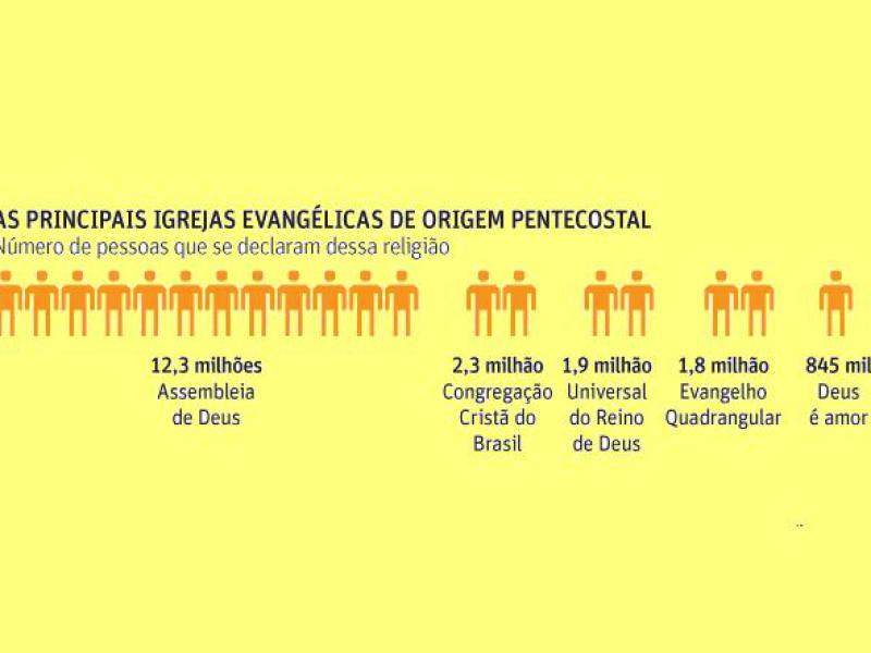 No caso dos evangélicos, o crescimento foi puxado pelas igrejas de origem pentecostal, como a Assembléia de Deus ou a Universal do Reino de Deus, que atingiram 13,3% do total da população. Os chamados evangélicos de missão, pertencentes a religiões mais tradicionais, como a luterana e a batista, tiveram menos oscilações.