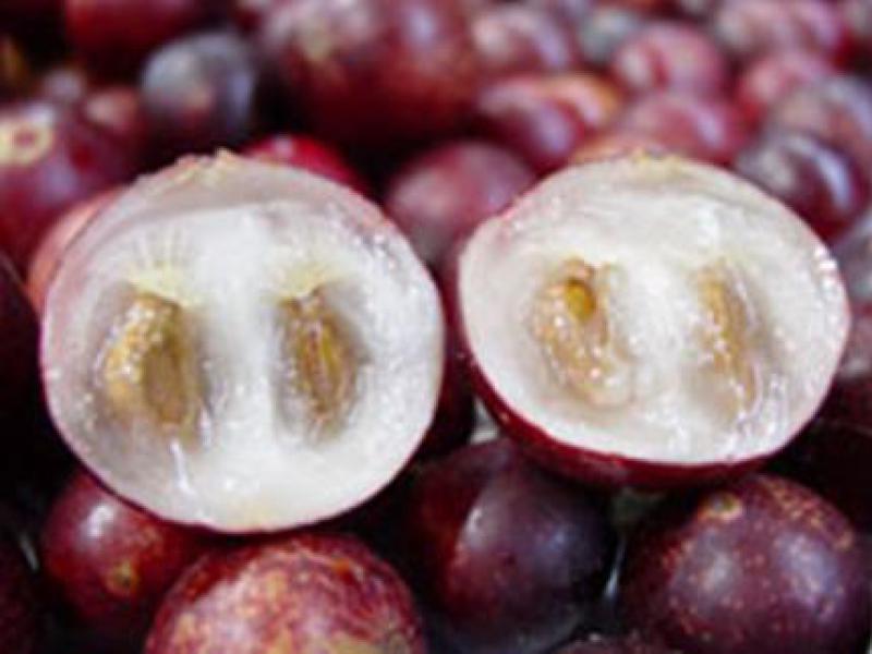 Da mesma família da jabuticaba, o camu-camu é uma fruta típica da região amazônica que se reproduz uma vez por ano no leito dos rios