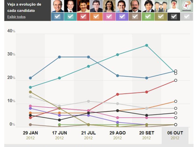 A pesquisa foi encomendada pela “TV Globo” e pelo jornal "O Estado de S.Paulo" e foi realizada entre os dias 4 e 6 de outubro. Foram entrevistadas 1.204 pessoas na cidade de São Paulo. A margem de erro é de três pontos percentuais, para mais ou para menos.