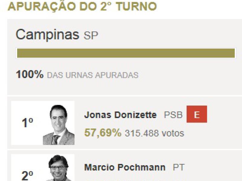 O deputado federal Jonas Donizette (PSB) venceu uma disputa acirrada com o ex-presidente do Ipea (Instituto de Pesquisa Econômica Aplicada) Marcio Pochmann (PT) e é o novo prefeito de Campinas (93 km de São Paulo)