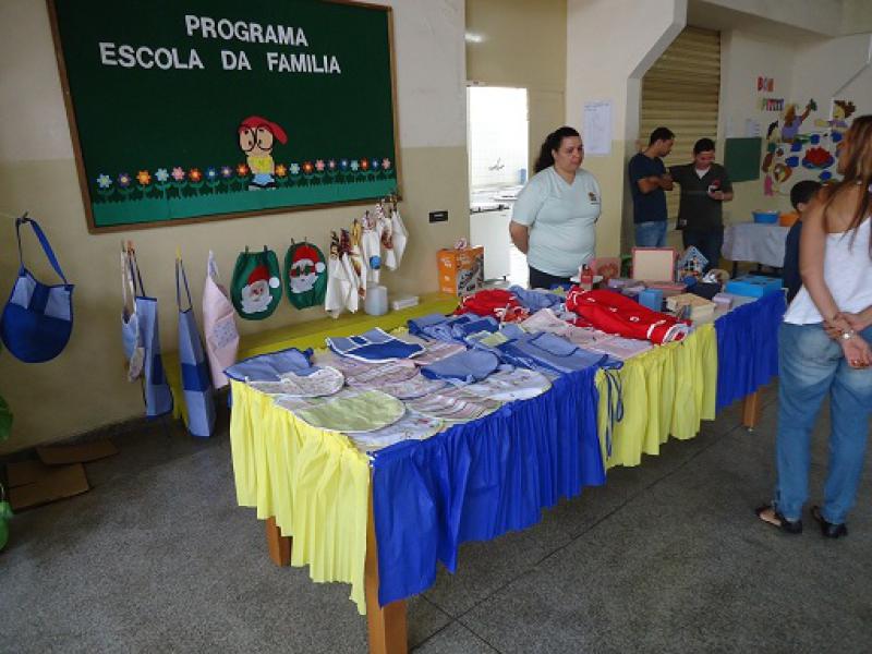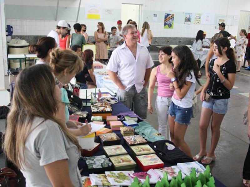 Os alunos da Emeb ‘Profa. Mara Cabral Simões Alegre’, do Bairro do Pinhal, colocaram à venda caixinhas, porta-joias, colares de miçangas e potes feitos com latas reaproveitadas. Junto à feira a escola também expôs trabalhos confeccionados pelos alunos da Educação Infantil.