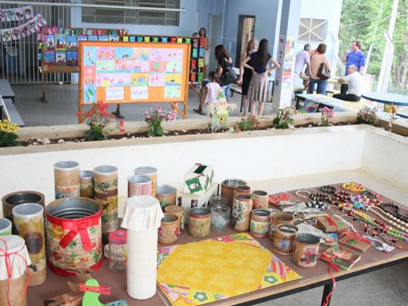 Os alunos da Emeb ‘Profa. Mara Cabral Simões Alegre’, do Bairro do Pinhal, colocaram à venda caixinhas, porta-joias, colares de miçangas e potes feitos com latas reaproveitadas. Junto à feira a escola também expôs trabalhos confeccionados pelos alunos da Educação Infantil.