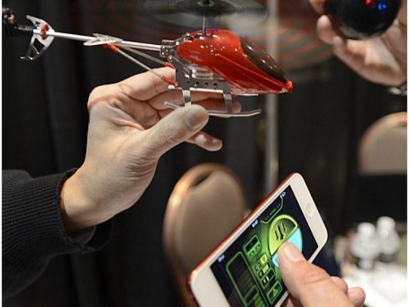 Helicóptero de brinquedo controlado, via bluetooth, por aparelhos celulares ou tablets. (Foto: EFE/EPA/Michael Nelson). (Fonte: Estadão)