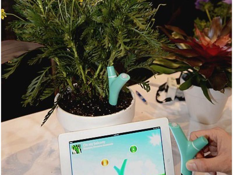 Chamado de ‘The Flower Power’, aparelho colocado no vaso monitora o ambiente e as condições da planta. Dados são enviados para o smartphone ou tablet do usuário. (Foto: EFE/EPA/Michael Nelson)