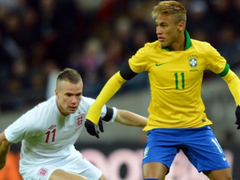 Já no fim do período inicial, Neymar teve uma chance clara para empatar, mas finalizou por cima do gol inglês.