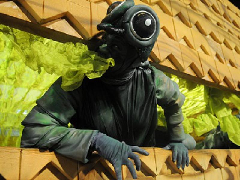 Alas emulando galos, gafanhotos, formigas, verduras, legumes e flores também ajudaram a caracterizar um cenário rural.