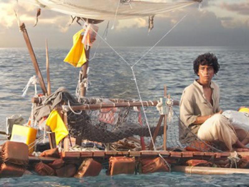 Numa das cenas mais dramáticas do filme, Pi é o único sobrevivente do naufrágio, e fica perdido no meio do oceano Pacífico, com um tigre de bengala chamado Richard Parker, uma zebra, um orangotango e uma hiena dopada por mais de 200 dias. O filme é baseado no livro de 2001 de Yann Martel, vencedor do prêmio 'Book Prize'.