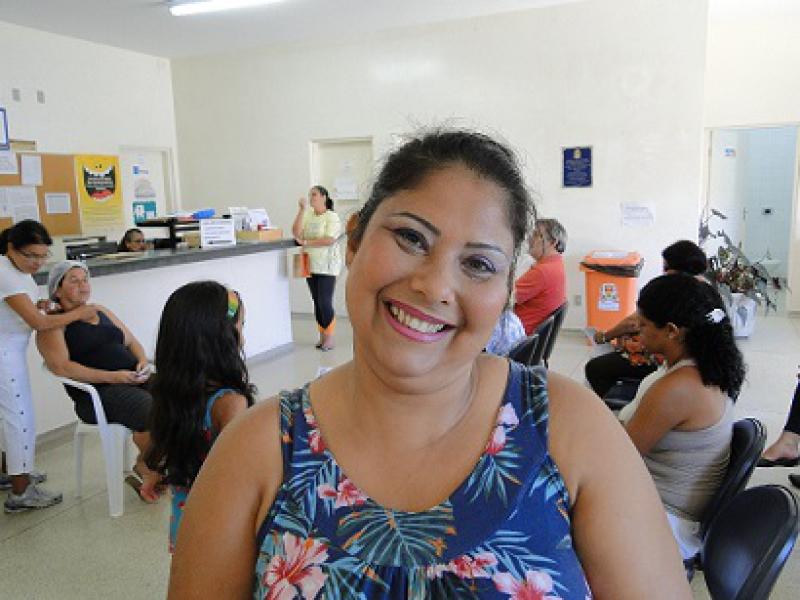 Dirce participa de atividades no Centro Comunitário do Jardim das Nações e acompanhou as palestras sobre sexualidade e cuidados estéticos e participou da sessão de yoga. Tais atividades foram promovidas pelo Nasf – Núcleo de Apoio à Saúde da Família e aconteceram no Centro Comunitário nesta quarta-feira, dia 6 de março. “Tirei um câncer de mama faz cinco anos. O ano passado comecei a fazer ginástica aqui no Centro Comunitário e foi ótimo”, conta Dirce. Baseada em sua experiência pessoal ela alerta: “essas ações de conscientização são muito importantes”.