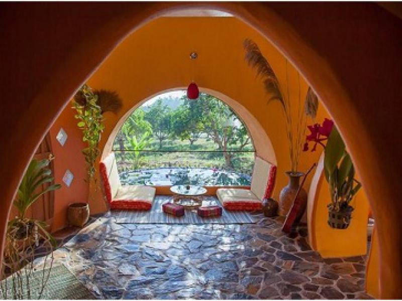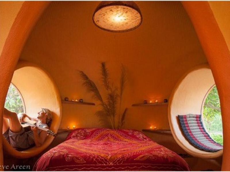 Segundo o site Inhabitat, Arren conseguiu a oportunidade de montar sua propriedade em uma fazenda orgânica de mangas no nordeste da Tailândia e utilizou uma técnica de braço articulado para criar uma esfera perfeita de tijolos.