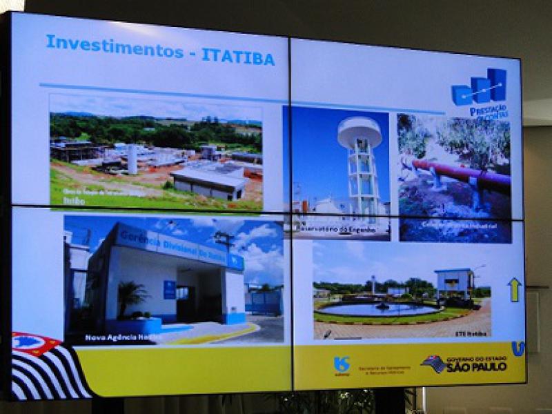 De acordo com os números apresentados, Itatiba apresenta índices de atendimento de 99,1% de abastecimento de água, 93,6% de coleta de esgoto e 96,6% de tratamento de esgoto. Houve investimentos no município, entre 2011 e 2012, na ordem de R$ 29,1 milhões, com metas de investimentos de mais R$ 23,53 milhões para 2013 e 2014. Os investimentos em 2013 serão dirigidos para implantação de nova ETA – Estação de Tratamento de Água, implantação de novo sistema de distribuição, ampliação e adequação de captação e adução de água bruta, expansão do SAA (Sistema de Abastecimento de Água) para as regiões da Rodovia Dom Pedro I e vetores Morungaba-Bragança, conclusão do Projeto Jacaré Limpo e conclusão do projeto de ampliação e adequação da ETE – Estação de Tratamento de Esgoto.
