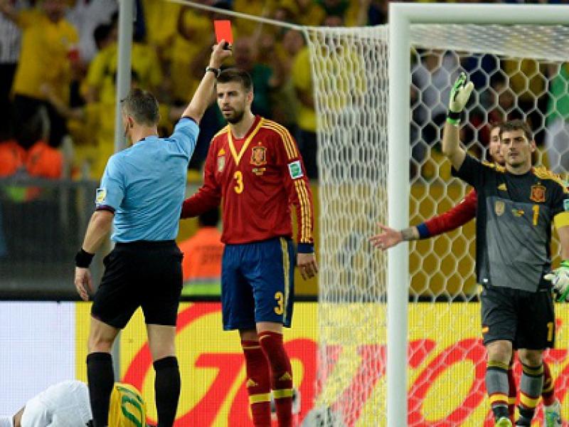 Após a expulsão de Piqué, aos 24 minutos do segundo tempo, os telões do Maracanã mostraram a reação da namorada do zagueiro, a cantora Shakira, que estava na área VIP. A torcida não teve dúvida e passou a gritar o nome da colombiana.