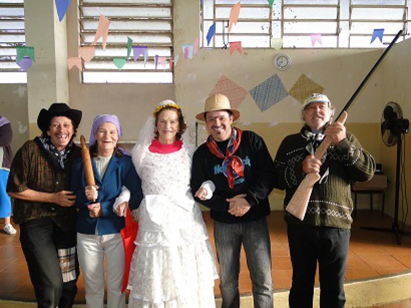 E o pessoal da Terceira Idade caprichou na quadrilha, teve até o pai da noiva com espingarda na mão. “É uma delícia. De vez em quando a gente faz um café da manhã, vai passear, faz essas festas. Com certeza traz mais qualidade de vida e muitas amizades. É muito legal mesmo”, disse Maria Adélia Fernandes Montini, 57 anos, Bairro do Engenho, que toda segunda-feira participa das atividades do "Viva Mais." (Fonte: ACPMI)