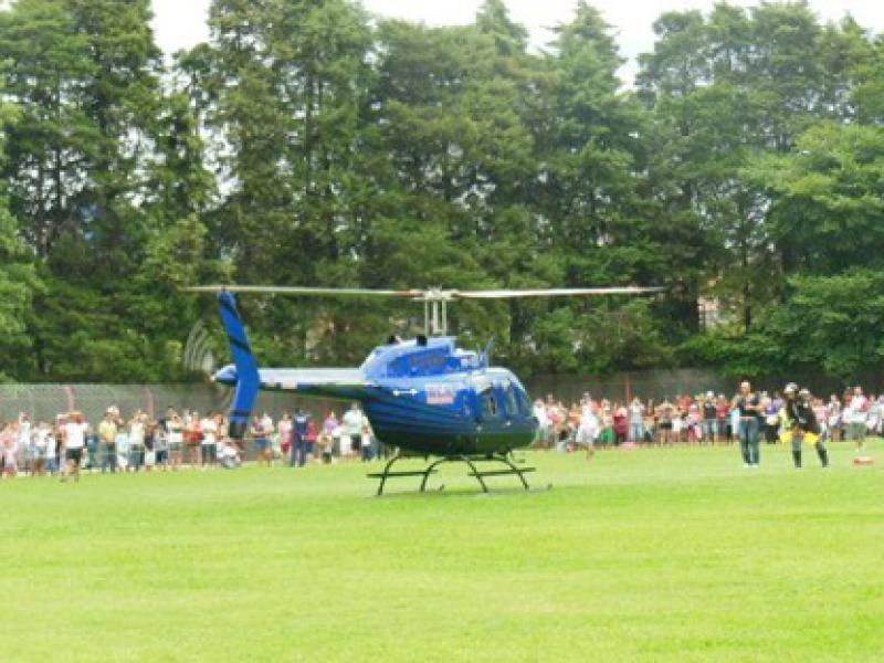 Quando o helicóptero começou a sobrevoar o campo os sorrisos aumentaram. O Papai Noel fez questão de cumprimentar todas as famílias presentes e, na sequência, embarcou no 'noelmóvel' e teve início a tradicional distribuição de balas. Até o Natal, o Bom Velhinho e sua equipe visitarão todos os bairros da cidade, levando balas, alegria e felicidade.