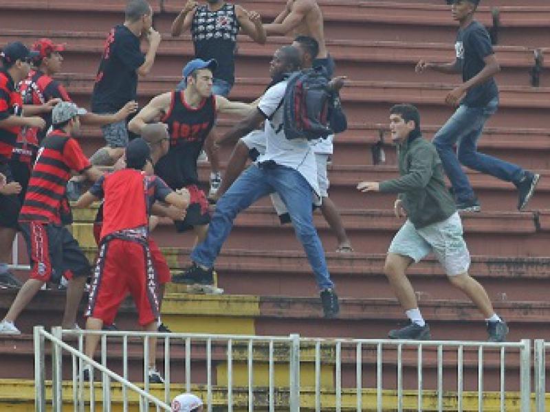 A confusão ocorreu aos 16 minutos do primeiro tempo e fez a partida ser paralisada por mais de uma hora. Filmada pelas emissoras de televisão, a briga envolveu torcedores dos dois lados, em vários pontos do estádio, com imagens fortes de pessoas desacordadas nas arquibancadas. Um helicóptero da Polícia Militar chegou a ser acionado para a retirada de um ferido dentro do gramado.