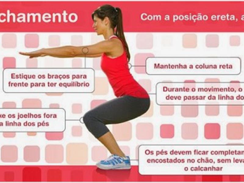 Esse exercício é feito na academia com um peso nas costas ou dois nas mãos, mas para fazer em casa e conseguir resultados, Carlos recomenda que seja executado bem lentamente e com repetições que ultrapassem as 12 contagens tradicionais. A imagem abaixo ensina a fazer corretamente.
