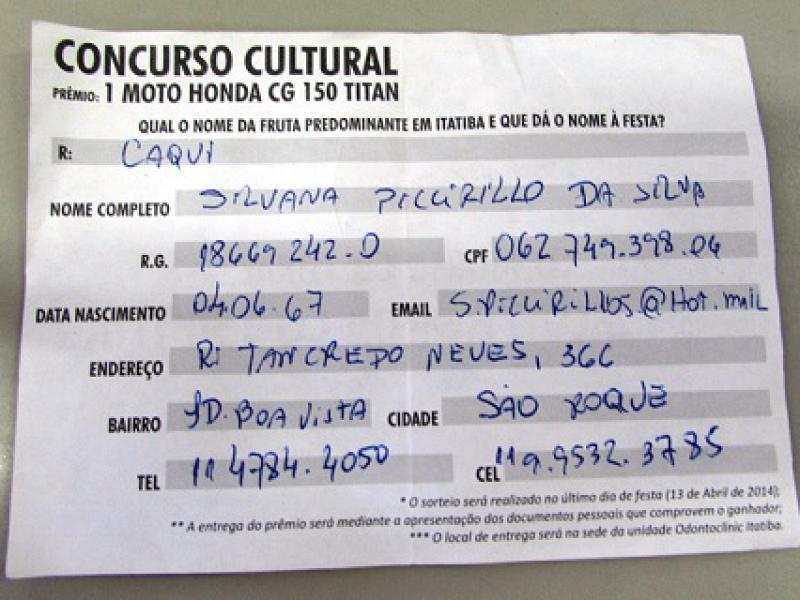 Puderam concorrer ao sorteio da moto, todas as pessoas que doaram um quilo ou mais de alimento não perecível na entrada do Parque Luís Latorre, durante os dias de Festa do Caqui de 2014, exceto colaboradores e parentes de primeiro grau (cônjuges, filhos, pais ou irmãos) de funcionários da Câmara Municipal de Itatiba e Prefeitura de Itatiba: prefeito, vice-prefeito, secretários, diretores, coordenadores, chefes, assessores, servidores públicos, vereadores, chefes de gabinete, assessores e demais colaboradores. (Fonte: ACPMI)