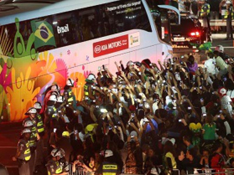 Na tarde desta quarta-feira (11), a seleção deixou o hotel e seguiu para o Itaquerão, palco da abertura da Copa do Mundo. O Brasil encara a Croácia na tarde desta quinta-feira, 12 de junho, às 17 horas (de Brasília). (Fonte: UOL)