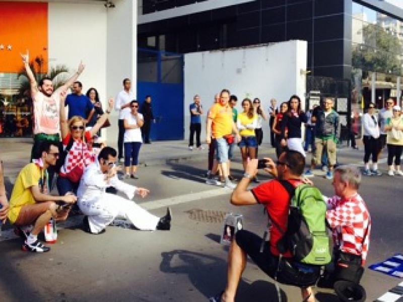 Na manhã do dia 12, quinta-feira, a festa continuava na Paulista, onde dezenas de turistas - muitos deles croatas, que estavam se preparando para a partida de mais tarde - celebravam a Copa na rua.