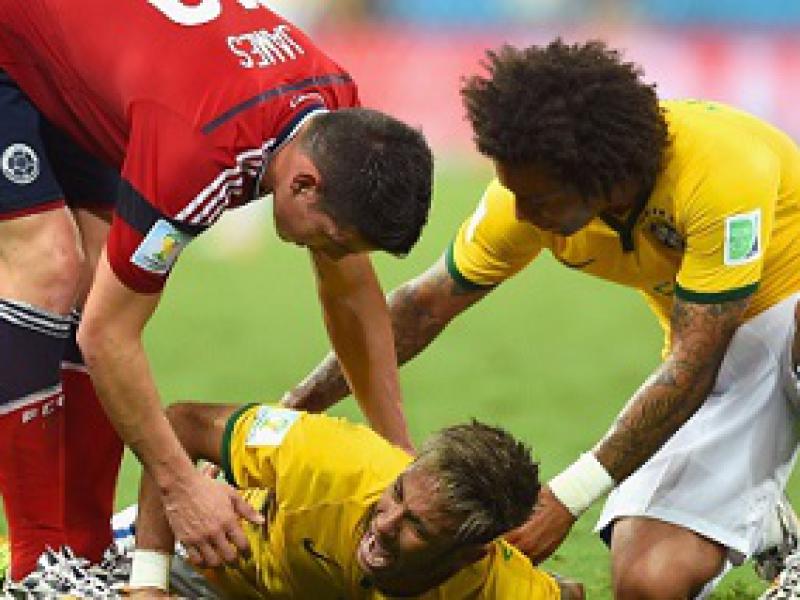 O lance da lesão ocorreu em falta cometida por Zuñiga, defensor colombiano, aos 40 minutos do segundo tempo. Ele acertou o joelho nas costas de Neymar. O atacante foi substituído no minuto seguinte por Henrique, e levado direto para o hospital.