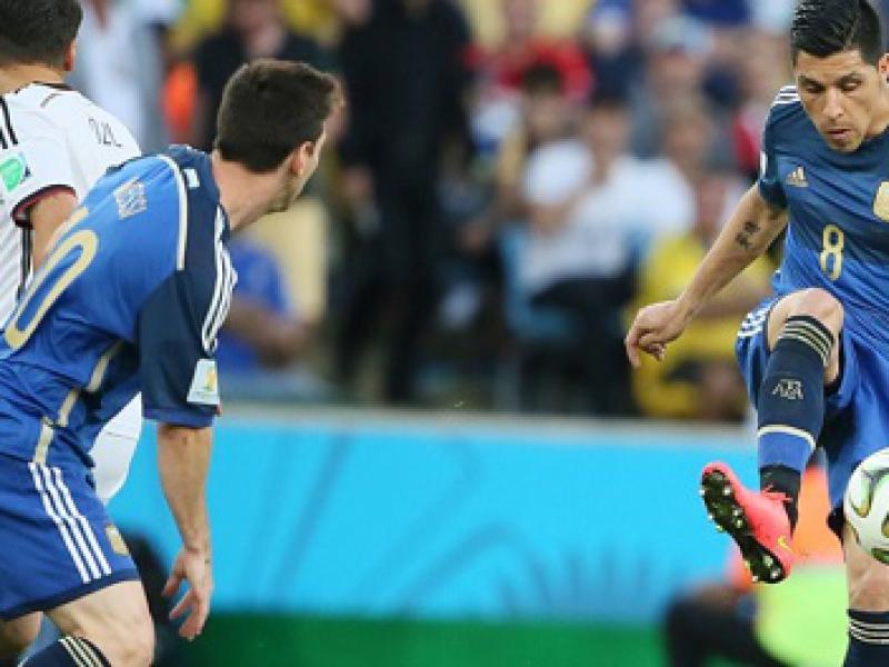 Na defesa, a Argentina formava uma linha de cinco defensores, com Mascherano recuado, para tentar evitar que o toque de bola alemão resultasse em passe profundo para alguém livre na área. Na única oportunidade que a formação abriu espaço, Romero fez bela defesa em chute de primeira de Schürrle. Além dessas chances, outras duas boas na primeira etapa: para a Alemanha, Höwedes acertou a trave após escanteio; do outro lado, Higuaín recebeu livre, após cabeçada para trás de Kroos, mas bateu torto cara a cara com Neuer - no 2°tempo da prorrogação, Palacio perdeu a outra grande chance argentina: livre na área, a matada no peito desenhou o gol do título. Porém, em vez de bater, o atacante produziu um misto de tentativa de chapéu com chute. A bola foi fraca para fora.