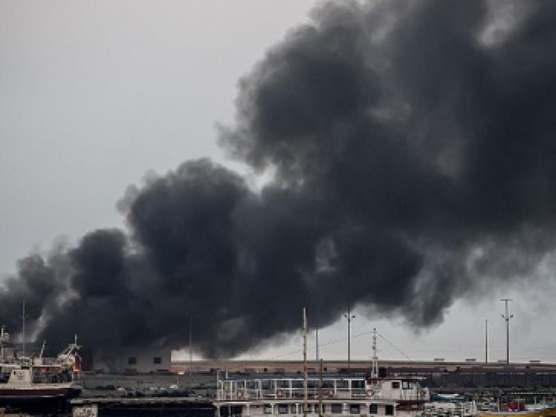 Uma grossa coluna de fumaça emergia das instalações, que suprem dois terços das necessidades de energia do território, e os contêineres de combustível estavam em chamas.