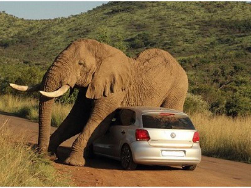 Um paquiderme, mais "folgado", aproveitou um carro de visitantes para se aliviar no Pilanesburg National Park (África do Sul).