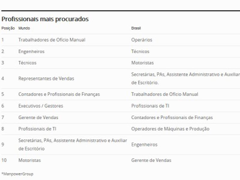 Confira abaixo quais profissionais mais faltam no mercado brasileiro e mundial: (Fonte Por Luiza Belloni Veronesi/InfoMoney)