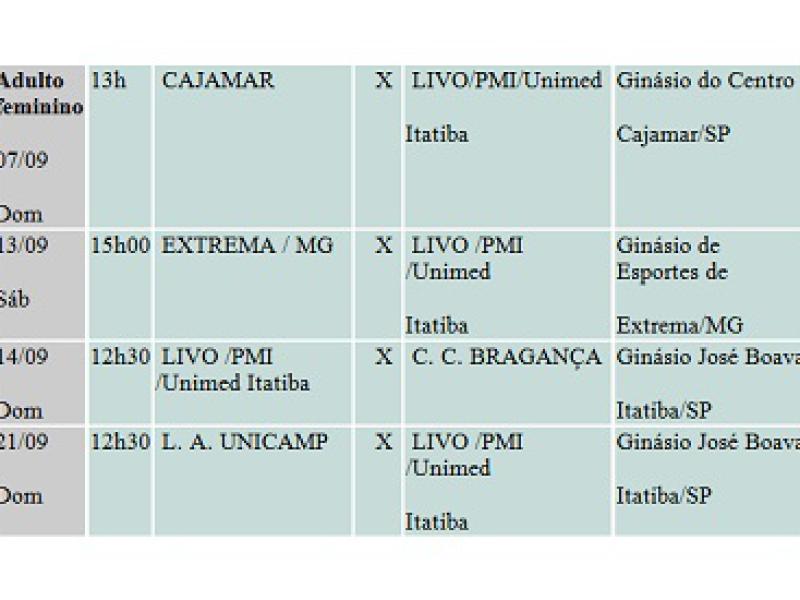 A equipe Itatibense jogou com: Amanda, Natalia, Bruna, Josiane, Kaká, Viviane e Gabi. Técnico: Ban. A equipe Adulta lidera o grupo B com 12 pontos, realizou seis jogos e obteve seis vitórias. (Fonte: Ban/Livo/ACPMI)