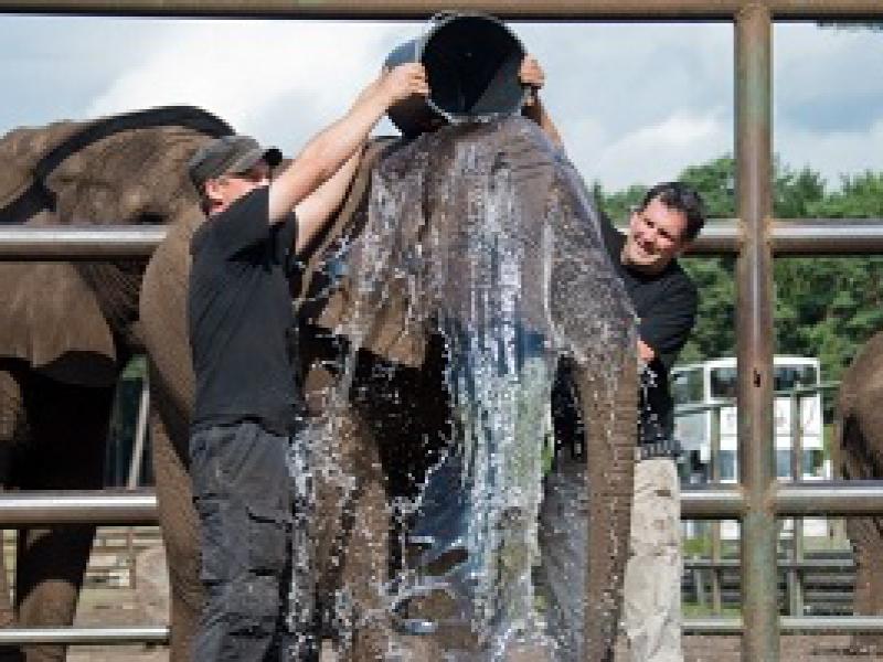 Elefanta participa do desafio do balde de gelo em parque da Alemanha