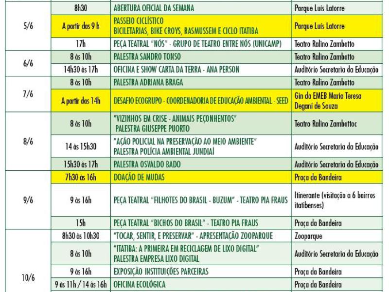 Como parte da programação da Semana do Meio Ambiente, a Cidade de Itatiba contará com atrações especiais. Três peças teatrais serão apresentadas no dias 5 e 9 de junho, domingo e quinta-feira próximos