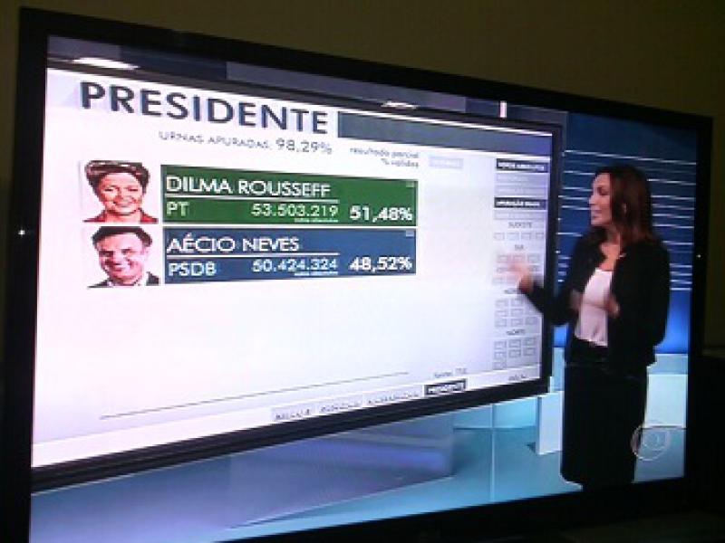 Por volta da 20h30, com 98% das urnas apuradas, Dilma tinha 51,45% dos votos e Aécio, 48,55%. A diferença de votos era de 3 milhões. Essa foi a menor diferença de votos em um segundo turno desde a redemocratização.