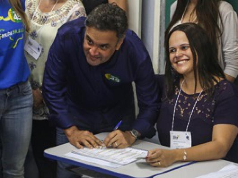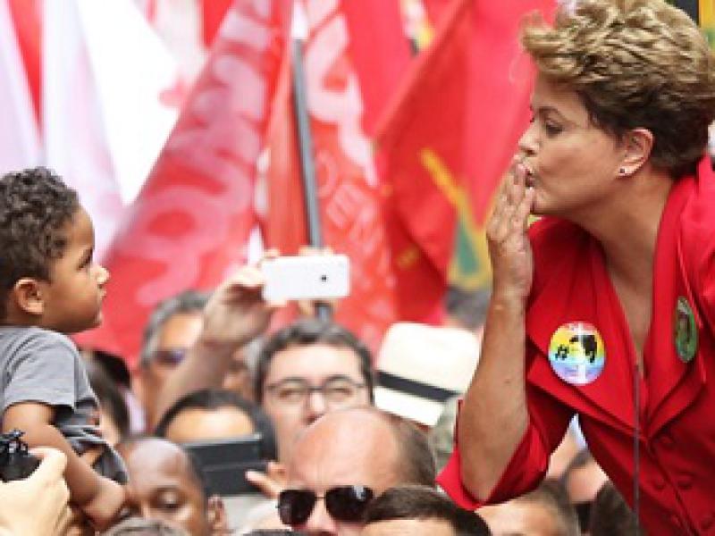 Primeira mulher a presidir o país, a petista liderou a votação no primeiro turno, mas passou a maior parte da campanha do segundo turno em situação de empate técnico com Aécio nas pesquisas de intenção de voto.