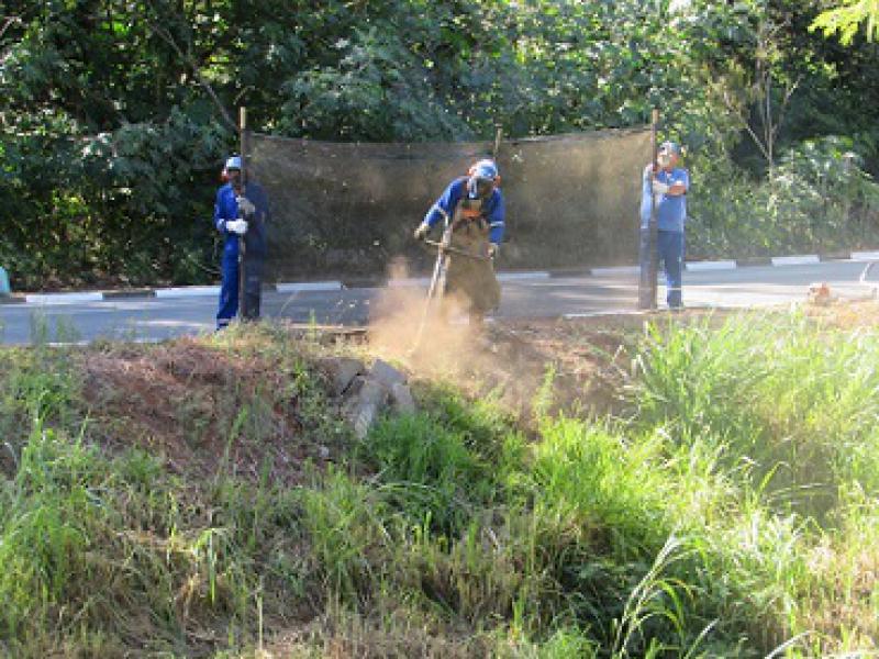 A primeira etapa da roçada aconteceu na Avenida Alberto Palladino, no Jardim Palladino, ao longo das margens até as proximidades da ponte que está sendo construída sobre o Ribeirão. Nesta semana, o serviço de roçada segue até a entrada da Vila Cruzeiro." (Fonte: ACPMI)