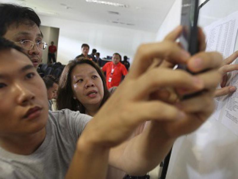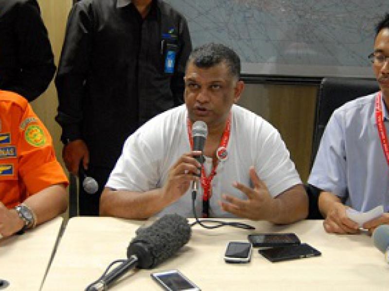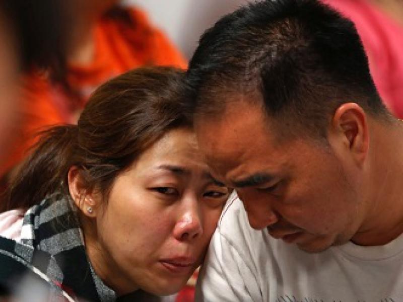 Familiares das 162 pessoas que viajavam no avião se abraçaram e choraram em Surabaia, de onde o avião decolou rumo a Cingapura, ao ver pela televisão as imagens de um corpo flutuando no mar.