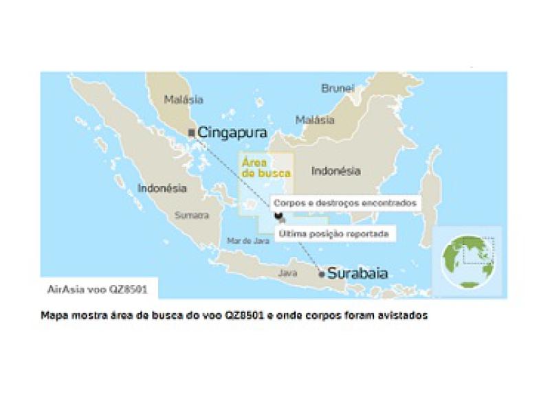 A Indonésia coordena as operações de busca e resgate, com a ajuda da Austrália, Cingapura, China, Coreia do Sul, Estados Unidos, Malásia, Nova Zelândia e Tailândia. (Fonte: UOL/Agências Internacionais)