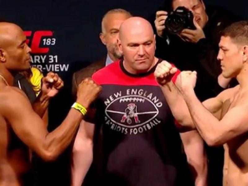 A encarada entre os dois lutadores foi bem tranquila, sem nenhuma provocação por parte de Anderson Silva.
