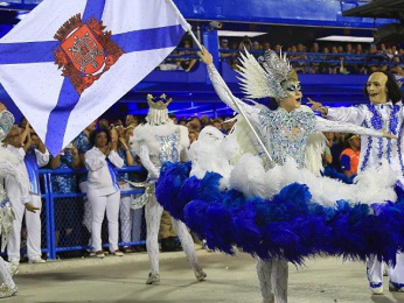 Para comemorar o aniversário de 450 anos da cidade do Rio de Janeiro, a agremiação iniciou seu desfile com a chegada de quatro paraquedistas pousando no meio da Sapucaí. O salto de 800 metros foi liderado pelo recordista mundial de skysurf Gui Pádua.