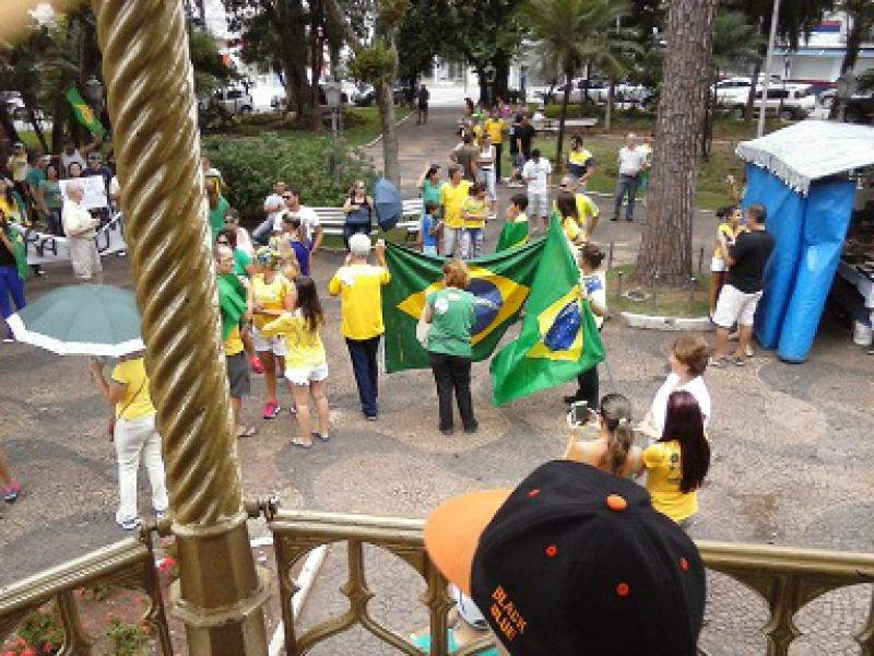 Um grupo de pessoas protestou na manhã deste domingo (15), em São Roque (SP), contra a corrupção no país. A manifestação foi na Praça da Matriz e, segundo a Polícia Militar, 80 pessoas participaram. Para os organizadores, cerca de 200 pessoas foram às ruas.