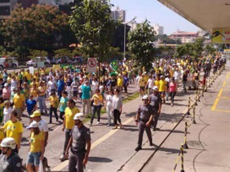 A cidade de São Paulo voltou a ter o maior número de manifestantes. Segundo a PM, 275 mil pessoas foram à avenida Paulista, região central. Nos protestos de 15 de março, a corporação falou em 1 milhão de pessoas nas ruas. No interior, houve registro de protestos em Campinas (10 mil participantes), Ribeirão Preto (25 mil) e São José dos Campos.